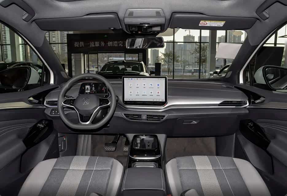 来到车内,2025款大众ID.4 CROZZ整体车内的设计和布局还是我们熟悉的模样,而且也依旧配有悬浮式的中控屏和仪表盘,其中2025款大众ID.4 CROZZ的中控屏尺寸达到了12.9英寸,而且此次针对车机,也升级为ID.S 5.0,这套设计已经基本上向当下的国产新能源车看齐了,当然就体验来说比起之前强不少,但比起国产新能源车来说还是差不少。此外,2025款大众ID.4 CROZZ也采用了全新的怀档,取消了屏幕下方的触控按键,车内主要就通过中控屏和语音来控制。