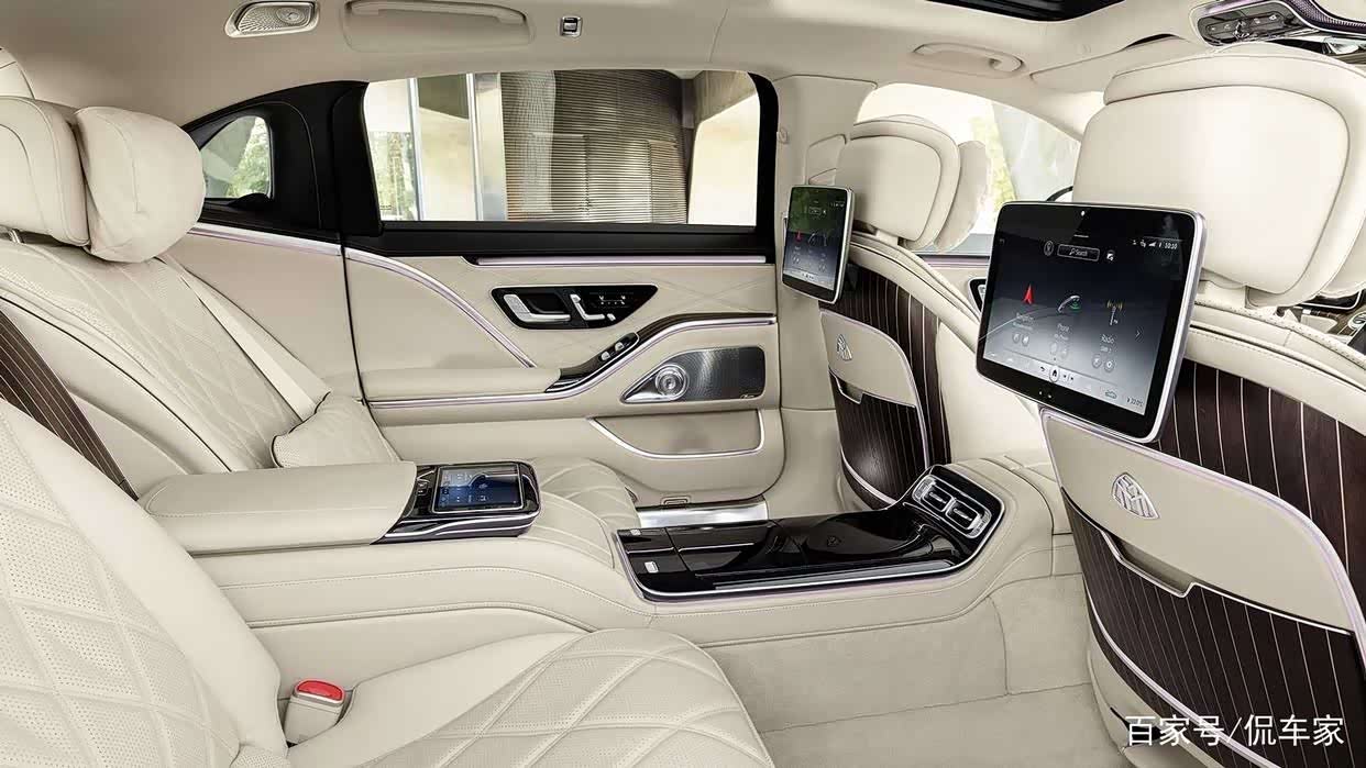 电子设备方面,全新梅赛德斯-迈巴赫S级搭载了第二代MBUX智能人机交互系统,12.8英寸OLED科技的中央显示屏,画质显示更加锐利。而全新裸眼3D仪表屏,同样给司机带来了沉浸式数字体验。当然,高科技带来的神奇与便利怎能忘记后排C位乘客,智能感应助理可根据后排乘坐者的目光、手势和肢体语言,控制主动式照明系统等更能,而且7英寸智能控制平板,也可以让后排乘客尽在掌控。此外,全新梅赛德斯-迈巴赫S车型配备了反向声波这一静音利器,让车内达到顶级的静谧性。