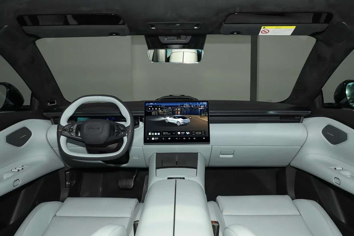 车内的设计相较车外常规了许多,配备15.4英寸中控屏幕,搭配配窄液晶仪表盘和HUD抬头显示,简洁富有科技感。车机依旧是LYNK Flyme Auto魅族车机系统,未来也有可能更换更高算力的芯片。高配车型使用了23扬声器的哈曼卡顿音响系统,主驾的头枕上还带有一个扬声器。