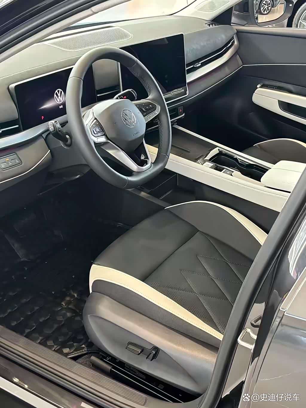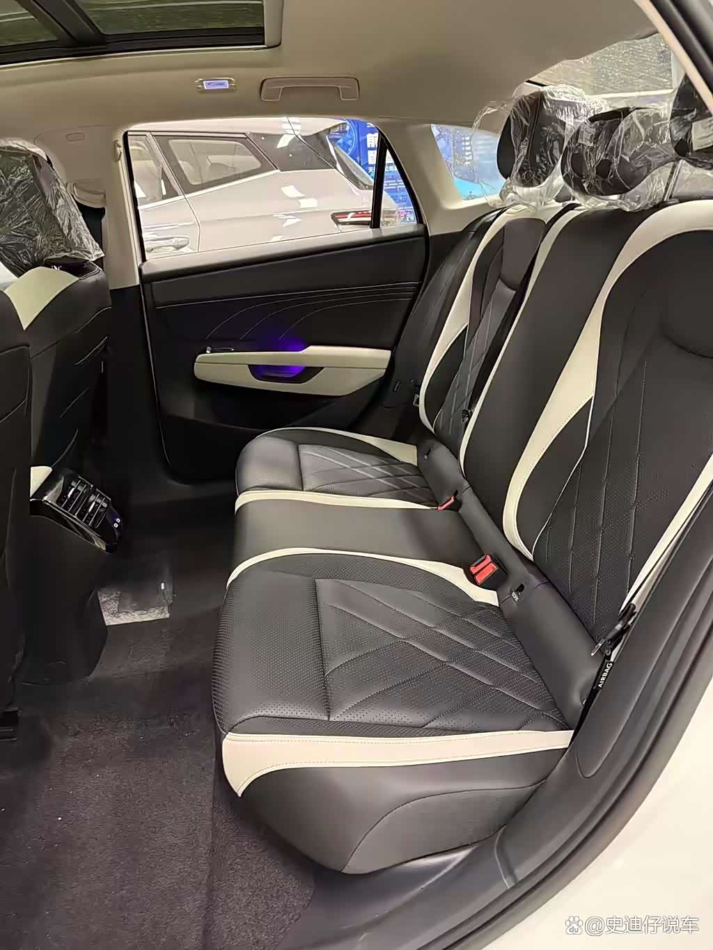 同时车内采用黑/白双色风格,大量皮质包覆配合镀铬饰条点缀,又营造出豪华气息。另外还换装了旋转式电子怀挡,镂空副仪表台上配备50W手机无线充电,而且还将采用拉杆式开门方式。