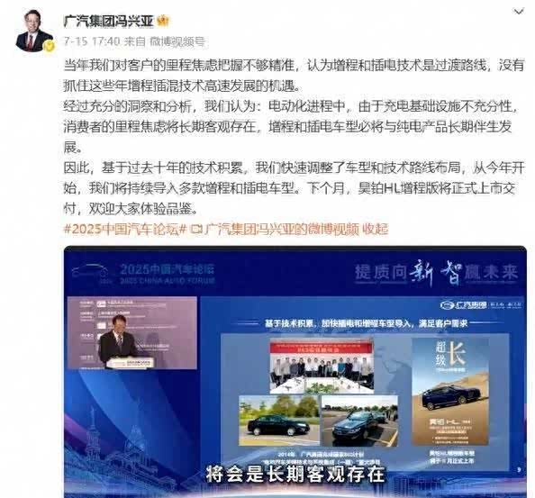 在广汽集团近期的一场内部战略会议上董事长冯兴亚坦言:“此前我们对客户里程焦虑把握不精准认为增程和插电技术是过渡路线错失了这些技术高速发展的黄金机遇。 ”这份迟来的反思直指广汽在新能源战场上的关键误判当理想汽车凭借增程车型稳居30万以上SUV榜首、华为鸿蒙智行以“可油可电”策略收割家庭用户时广汽仍笃信纯电路线才是终极答案。