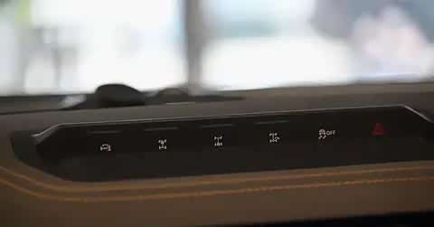仪表台中央设计了一排按键,包括断开前防倾杆、前后桥差速锁以及坦克掉头功能等,这些按键采用防水防尘的软橡胶材质覆盖。挡杆后方则配备了四驱系统和驾驶模式的旋钮。此外,还配备了G.O.A.T全地形智能管理系统,该系统提供标准、经济、湿滑、泥泞、沙地、岩石爬行以及Baja共七种模式。而针对远湾、长滩和墨钻等不同版本,则在此基础上进行了适当的简化或调整。