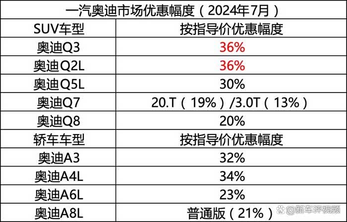 EVO 1.5T的奥迪Q2L。目前该车的优惠幅度和奥迪Q3保持一致,都在指导价的64折左右徘徊。