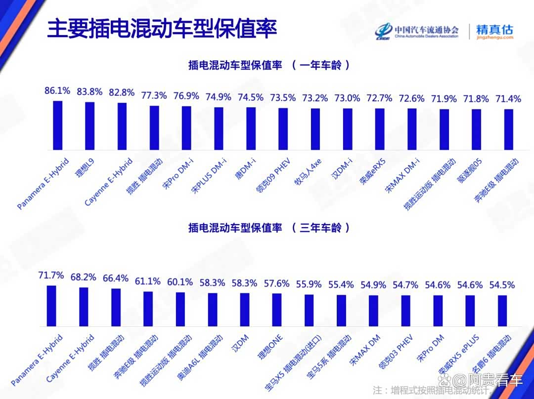插电混动车型保值率(三年车龄)排名前三的车型分别为保时捷Panamera E-Hybrid(71.7%)、保时捷Cayenne E-Hybrid(68.2%)、揽胜插电混动(66.4%),比亚迪品牌多款车型挤入榜单TOP15(三年车龄)中,包括宋Pro DM-i、宋PLUS DM-i、唐DM-i、汉DM-i、宋MAX DM-i、驱逐舰05。