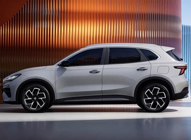 车身侧面线条流畅舒展,采用悬浮式车顶设计,搭配半隐藏式门把手与低风阻轮毂,有效降低风阻系数,兼顾美观与实用。车身比例协调,轮眉微微外扩,凸显SUV车型的硬朗气质,侧面运动高亮黑饰条点缀,进一步提升年轻化质感。车尾配备星矢贯穿式LED尾灯,与前脸贯穿灯带形成呼应,搭配高亮黑运动尾翼与运动包围,整体造型既保留家族基因,又彰显SUV的独特气场。