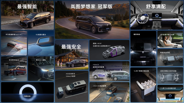 此次上市的岚图梦想家冠军版,是30万级市场唯一搭载华为乾崑智驾ADS4的MPV车型,真正实现了全场景智能驾驶的“有路就能用”。新车配备的激光雷达拥有250米超远探测距离和30厘米小目标识别能力,雨雾、夜间等复杂路况下仍能稳定工作,同级独有的窄路掉头辅助驾驶功能,更是解决了家庭出行的泊车、掉头难题。安全层面,岚图梦想家冠军版创下行业新纪录,成为国内首个通过110km/h超美标高速追尾测试的MPV,130km/h AEB自动紧急制动刹停、CAS4.0全维防碰撞系统构建起主动安全防线;而在家庭用户最为关注的三排安全上,新车在座椅靠背嵌入高强度钢板,为老人、孩童的出行保驾护航,重新定义了高端MPV的安全天花板。