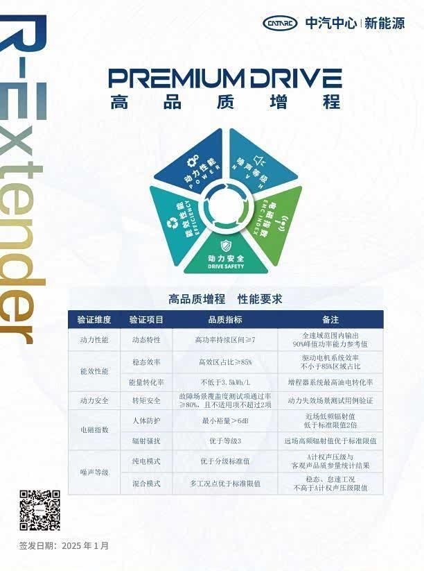 随着新能源汽车成为国家战略重点,中汽中心亦成立新能源中心,专门针对新能源车制定“Premium Drive 高品质电驱”、“Premium Drive 高品质增程”等评价标准。会计、工程等行业通过等级考试划分从业人员的专业性,取得高级会计师、高级工程师资质即意味着成为了行业最优秀的人才,“Premium Drive 高品质增程”就像是为车企而设的考试,只有具备行业领先的技术实力才能通过考核,获得高品质认证。
