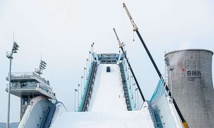 【全新星纪元ET增程四驱在60米高,164米长的北京首钢滑雪大跳台,完成了全球首次37.82°冲坡挑战】