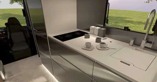 设备规格尚不清楚。例如,尚不清楚以下功能是标准配置还是选配。清单包括一台12V空调、一块300Ah锂电池、太阳能电池板(总功率770W)以及一个200升的淡水箱。车内应该有15个USB接口和8个220V插座。控制面板可以连接到你的智能手机。