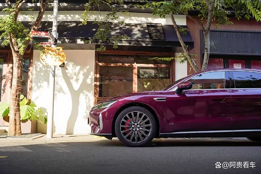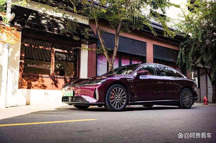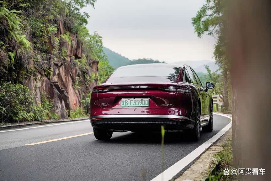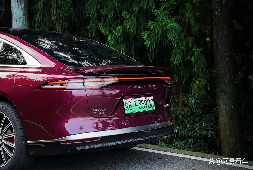 外观上的豪华感是第一眼就能抓住人的。超 5 米车长配 3 米轴距,车身比例舒展得像艘游艇,半隐藏式门把手在关门时轻轻吸合,主动尾翼在车速过 90km/h 时自动翘起,既添了运动感,又悄悄把风阻压了下去。8 层车漆在阳光下泛着珠光,摸上去的细腻质感,比同价位车型明显厚实一截。