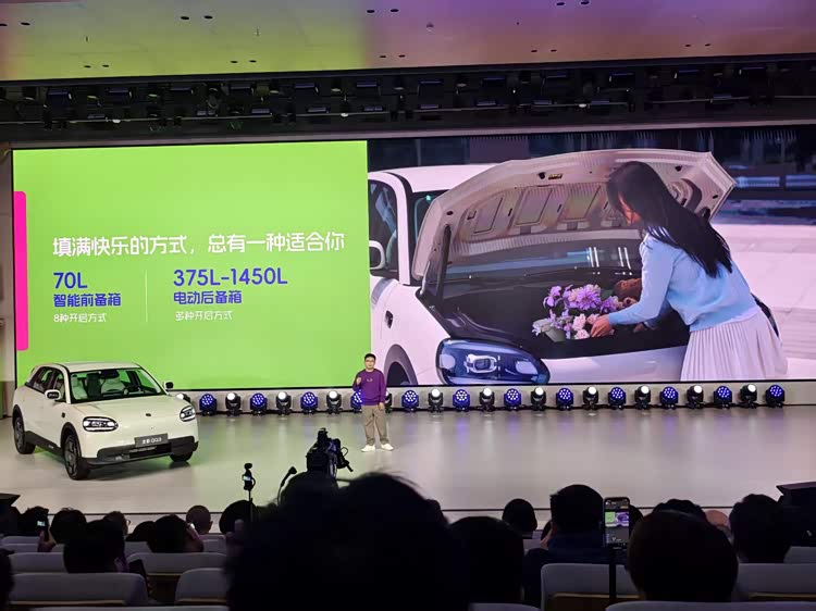 虽然定位于A0级,但它的轴距达到了惊人的2700mm,直接摸到了B级车的门槛。85%的超高“得房率”、977mm的二排腿部空间,再加上同级罕见的70L智能电动前备箱(支持8种开启方式),让年轻家庭的出行装载毫无压力。