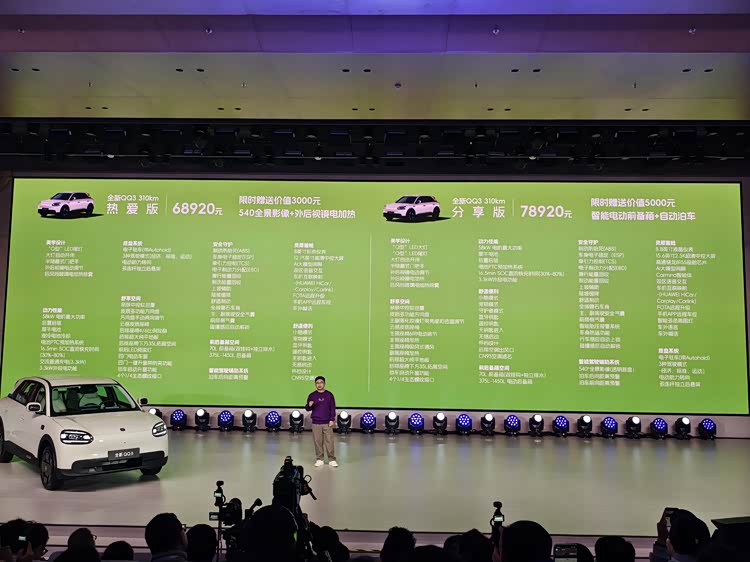 紧接着,3月10日晚,全新奇瑞QQ3正式开启预售,预售价区间定格在68920-89985元。