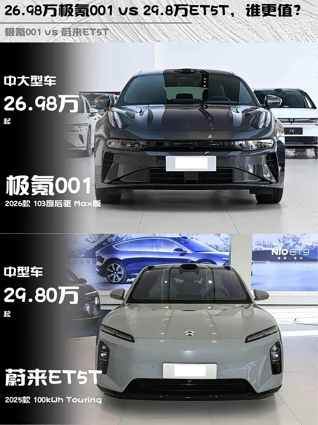 最近在纠结极氪001 2026款 103度后驱 Max版和 蔚来ET5T(参数|询价) 2025款 100kWh Touring的朋友看过来!作为深度体验过两台车的车主,这篇对比绝对能帮你理清思路👇