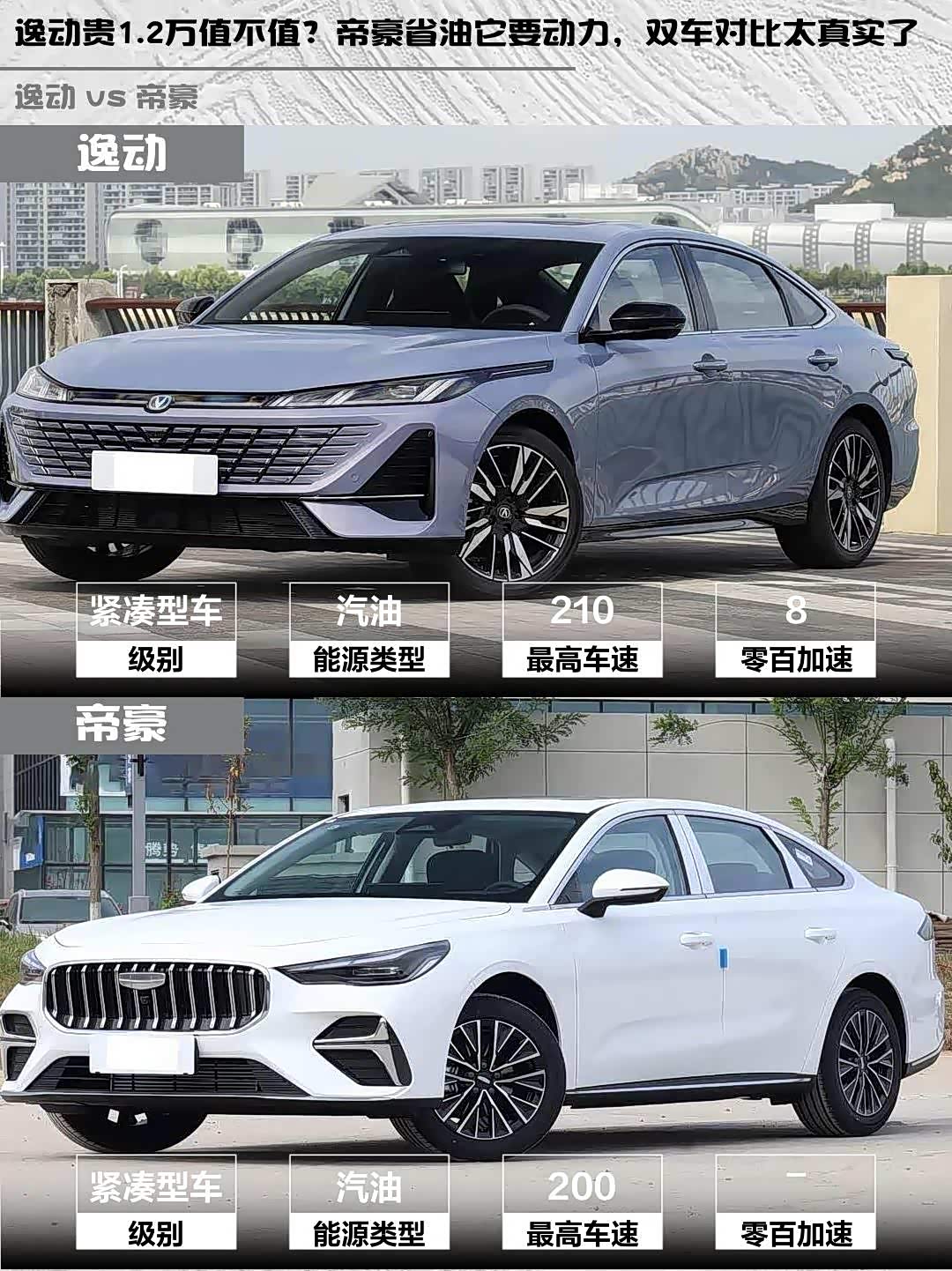 最近后台好多兄弟在问10万级家轿怎么选,尤其是 逸动(参数|询价)2026款第四代1.5T 500Bar智享型和帝豪2026款第5代1.5T DCT尊贵型这两款🔥 作为开过两台车的"老司机",今天直接上硬核对比!
