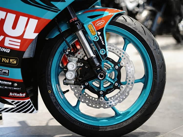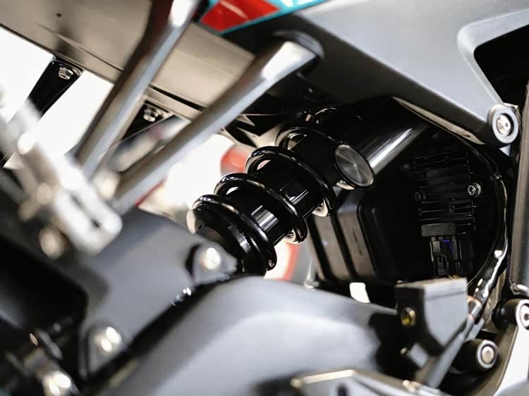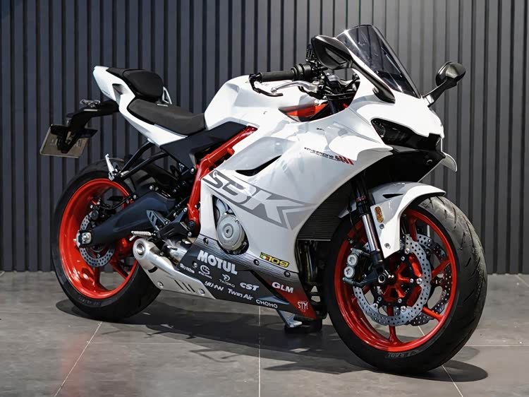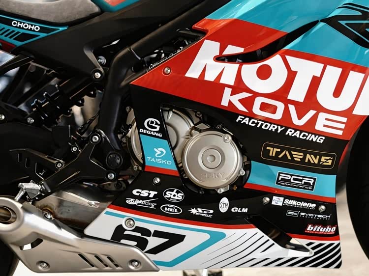 硬件方面,减震系统采用KYB全可调倒置前叉,支持预载、压缩、回弹全段可调,基于BSB赛事数据重新标定,后悬架采用KYB外置气囊后减震,兼顾赛道支撑性与日常骑行的滤震表现。原厂标配渝安转向阻尼钛尺,保证操控稳定性。刹车采用泰斯克双子星径向四活塞卡钳,后单活塞单碟卡钳,全系标配双通道博世ABS、可关闭TCS牵引力控制。