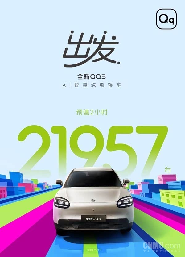 车家号·0浏览·2026-03-11 11:20 · 北京【CNMO科技消息】3月10日,奇瑞汽车宣布旗下全新纯电车型QQ3正式开启预售。官方数据显示,新车预售启动仅2小时,订单量超2万台,达到21957台。据CNMO了解,此次预售的全新QQ3共推出4款配置车型,预售价格区间为68920元至89985元。新车提供310公里和420公里两种续航版本,以满足不同用户的日常通勤需求。