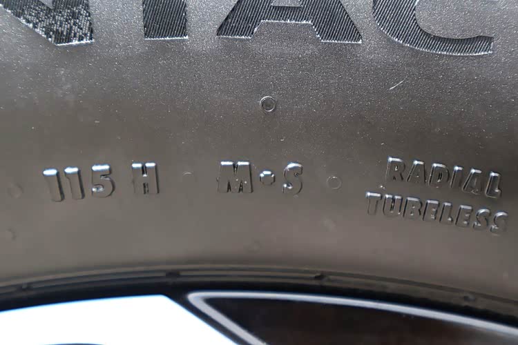 我们来看看猛士M817搭载这款轮胎的型号——275/60 R20115H M+S,比坦克500搭载的265/55 R19109H M+S还大了一圈。其中115代表承载是1215kg,H表示速度级别达到210km/h,M+S表示它是一款四季适用的轮胎,让你更轻松应对冬季驾驶环境。