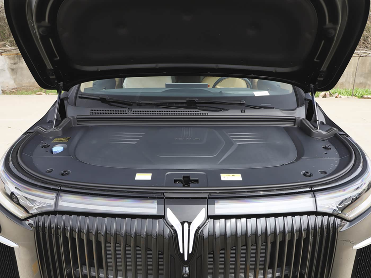 前包围部分,岚图梦想家冠军版还配备了垂直布局的导流槽,并加入高亮镀铬条进行点缀,前唇部分还有扁平的矩形进气口,内部还加入网格状结构进行装饰,整个车头看上去非常有气势,也很显档次感。