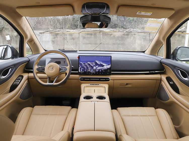 车内部分,岚图梦想家冠军版的设计也非常符合时下新能源汽车主流,整个座舱呈环抱式设计,中控区域采用木纹饰板装饰,档次感很足。同时,新车还提供有三幅式多功能方向盘、10.25英寸全液晶仪表盘、15.6英寸中控屏以及电子怀挡,29英寸HUD抬头显示系统也没有缺席,科技感氛围拉满。