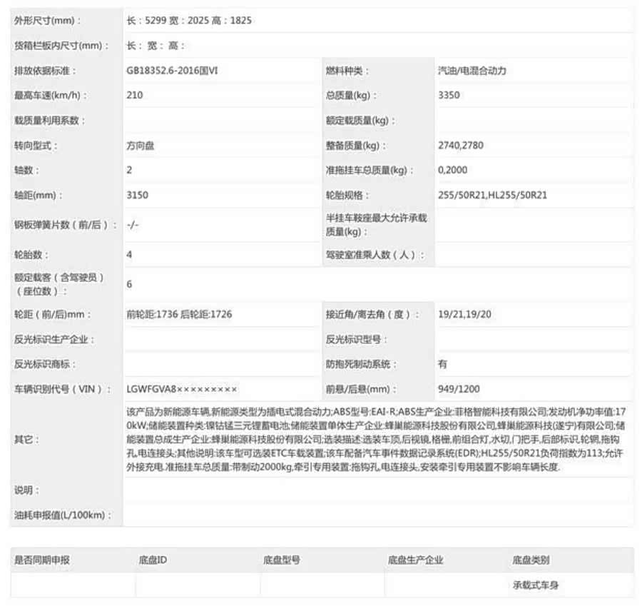 车身尺寸方面,V9X的长宽高分别为5299毫米、2025毫米和1825毫米,轴距达到3150毫米。动力系统由2.0T发动机与电机组成,发动机最大功率为175千瓦,车辆最高时速可达210公里/小时。官方数据显示,其在满电状态下0-100公里/小时加速时间为4.4秒,馈电状态下则为4.7秒。据悉,该车可能基于800V混联架构打造,并搭载混动6C电池,有望实现超过400公里的纯电续航,并支持充电5分钟增加200公里续航的能力。