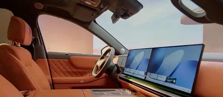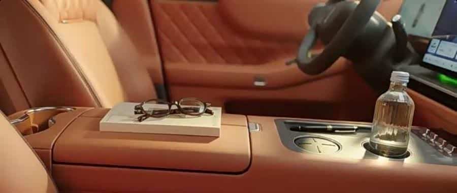 新车采用2+2+2的六座布局,着重提升后排乘坐体验。第二排座椅支持躺椅模式,并配备了可翻折的娱乐屏,边缘还嵌入了氛围灯带。在便利性配置上,前排及第二排扶手区域均提供了手机无线充电功能。