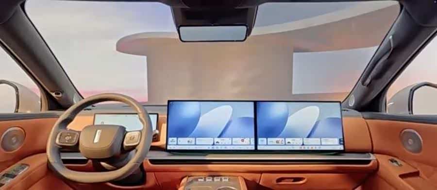 进入车内,V9X采用了新能源车型流行的设计布局。狭长的全液晶仪表与大尺寸悬浮式中控屏、副驾娱乐屏共同构成了一体式联屏,科技氛围浓厚。贯穿式空调出风口与环抱式座舱设计相结合,增强了内饰的层次感。