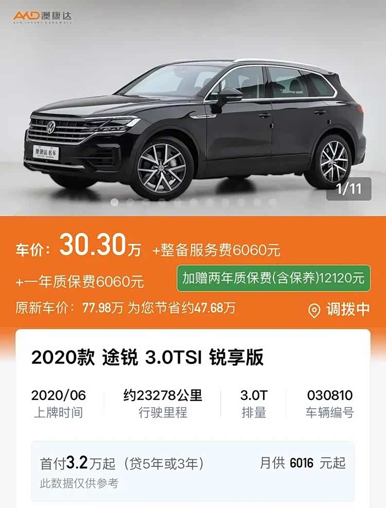 这是为欣赏顶级机械素养的“隐贵”们准备的终极礼物。这台2020款 大众途锐(参数|询价) 3.0TSI 锐享版,行驶约2.3万公里,30万出头的价格,你买到的是纯粹的百万级核心技术:3.0T V6引擎的绵密动力,带托森差速器的全时四驱带来的强大抓地力与不俗越野能力,以及空气悬架赋予的从容驾乘质感。