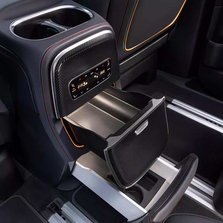 扶手箱前端区域变为了规整的双杯架,手机充电面板,很有国产车的气息,怀挡机构作为奔驰的招牌,当然不会缺席,门板也有着层次感丰富的设计,豪华感较上一代车型有着大幅度的提升,第2排标配了吸顶娱乐屏,31.3英寸,8k分辨率,提供了不输国内友商车型的观感体验,22扬声器,柏林之声音响,当然也是标配,后排方面提供6座到8座版本可供选择,多种搭配,显得相当的灵活,奔驰对该车的座椅,尤其自豪,可以以丰富的角度移动和折叠,中央有宽敞的过道从容的第3排进出。但这些对于国内市场来讲都不算新鲜,值得一提的是运动的版本有着大面积翻毛皮座椅加红色安全带以及整体熏黑的内饰,这还算是差异化的设计,给人耳目一新的体验。