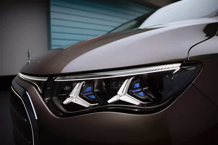 具体来看,前脸部分,一眼看上去就是最新的家族风格,和已经发布的全新GLC、GLB都保持一致,多边形的大嘴格栅奔驰车标引出的夸张面板,有镀铬和点阵式搭配,显示出超强的辨识度,也几乎占据了整个车鼻,上方引出了贯穿灯带,连接了扁平的大灯组,双三叉星式的结构刚好和全新奔驰E级形成对应,彰显了VLE的身份,前保险杠部分则是多段式镂空装饰,增强了运动的属性。当然还有更加豪华的版本,采用的立标,彰显了身份感,中网样式有所不同,前保险杠部分加入了镀铬条,显示了特殊的气质。