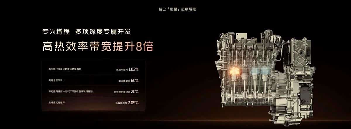 解决了纯电续航的痛点后,“恒星”技术对增程系统的核心——增程器(发动机)进行了深度优化。其搭载的Zephyr 1.5T增程专属超效发动机,凝聚了上汽集团深厚的内燃机技术底蕴,并应用了多项顶尖科技: