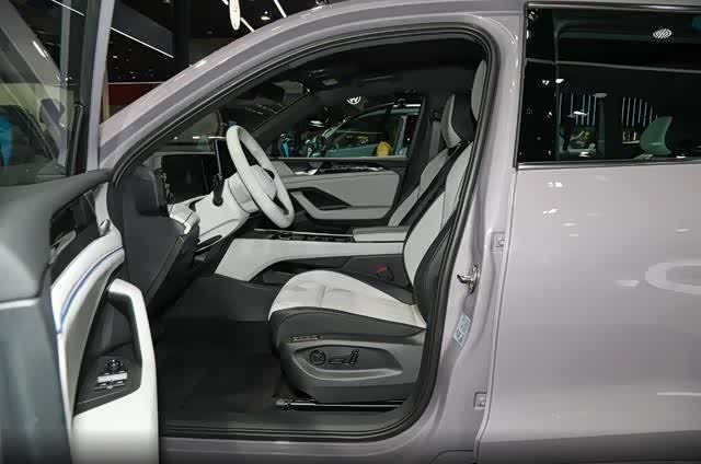 中控台以软性材质包裹,但门板等区域仍保留硬塑料,豪华感略逊于国产竞品。座椅采用皮质云感面料,支持12向电动调节、加热/通风(高配)及按摩功能(顶配),搭配三温区自动空调,乘坐舒适性达到同级主流水平。