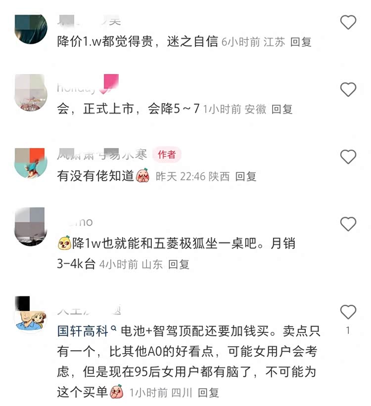 先说为什么会有一些人觉得超出了自己心理预期?首先,必须要说,盯着入门级纯电小车市场的用户,往往会对价格敏感,不少用户甚至认为,在价格面前一切可以妥协。所以,参考当年全新MG4、极狐T1上市出价格的时候,引起了不少的关注,哪怕MG、极狐这样势能比较差的品牌都能靠着价格把小车卖爆,所以很多人也对全新QQ3充满了期待,认为它肯定会卷价格。