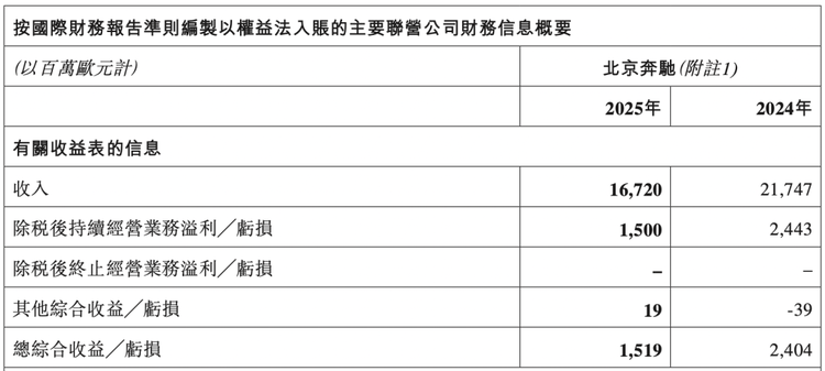 财报显示,奔驰2025年营业利润暴跌至58亿欧元(约合人民币464亿元),分红总额减少逾两成。据此计算,北汽集团凭借9.98%持股可获约33.3亿元分红,吉利控股凭借9.69%持股可获约32.4亿元。