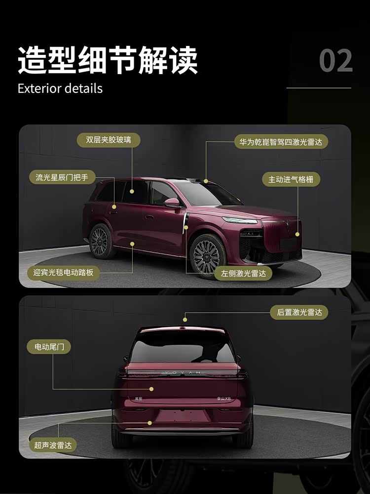 新车将首搭华为全新一代智能座舱,有望在语音交互、多设备流转和场景联动上带来全新体验 。同时,在智能驾驶方面,泰山X8配备了问界M9同款四激光雷达方案,实现360°全向感知。