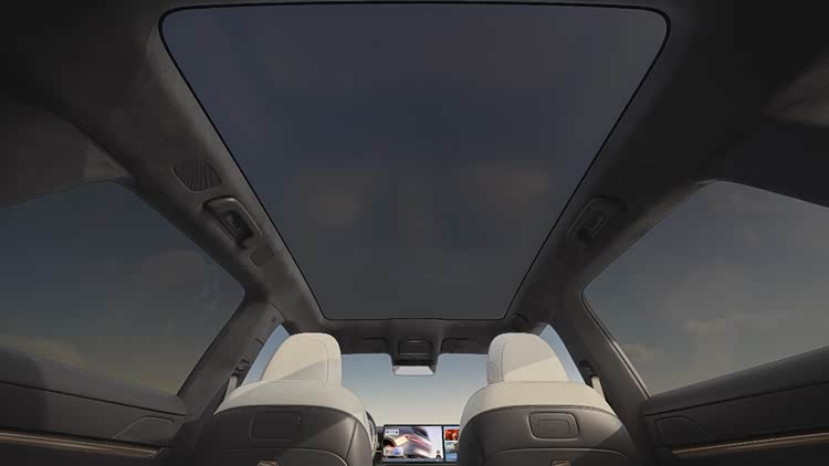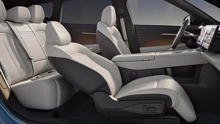 车内配备Nappa真皮座椅,主驾座椅支持12向电动调节,同时配备加热、通风、按摩功能。副驾座椅支持14向电动调节,配备电动腿托,靠背可调至120°躺姿。前排座椅靠背设有折叠桌板和可充电磁吸接口,后排座椅靠背可电动调节10°,前后排座椅联动可实现大床模式。此外,与众08的空调出风口采用隐藏式设计,还配备1.74㎡智能调光天幕,支持10档调节,可在1秒内完成透明与雾态切换。