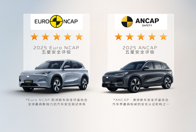 整车安全层面,2026款银河E5拿下了Euro NCAP和ANCAP双五星认证。成人保护、儿童保护、安全辅助系统四个维度的得分都比较靠前。