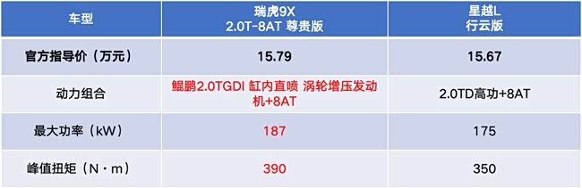 相比之下,星越L的2.0T高功率发动机也不弱,175kW、350N·m的数据,日常驾驶绝对称得上充沛。只是,当把两台车放在一起对比,瑞虎9X的赛道验证背景、对油品的宽容度,以及更全面的四驱适应能力,显然为追求“诗和远方”的家庭,提供了更低的出行成本和更广阔的出行半径。