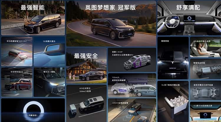 一直在引领,从未被超越!在当下家用MPV市场,还没有一款产品能够在智能、安全、舒适三大核心维度,全面满足用户需求,真正做到全面领先。站在第20万辆的新起点,岚图汽车携手华为乾崑,限量推出岚图梦想家冠军版,将智能、安全、舒适的核心优势带入更多家庭,共同开启智能家用MPV新时代!