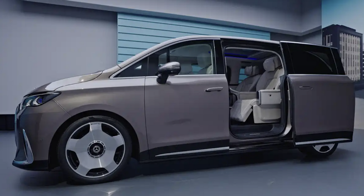 新车和奔驰Vision V概念车高度契合,前脸很有冲击感,还配合奔驰立标,大饼轮毂很“迈巴赫”的风格,流畅车身搭配专属卡姆尾设计,风阻系数低至0.25,兼顾美学与能效表现。