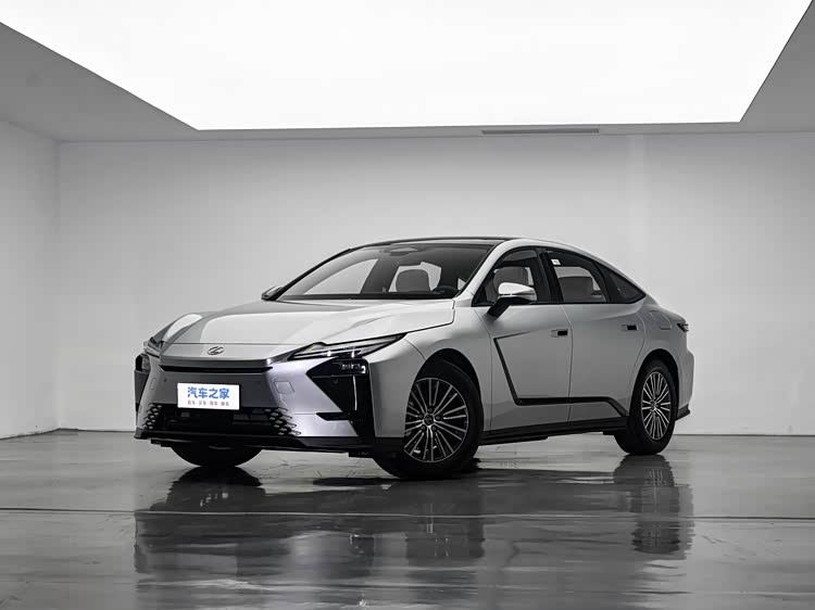 来看侧面,黑色饰条装饰的裙线比较抢眼,增强了运动感。新车采用了隐藏式电子门把手和溜背式造型,有助于优化空气动力学表现。车身长度为5140mm,轴距为2950mm。混动版配备的是18英寸轮圈,轮胎规格为235/60 R18,而纯电动版则采用21英寸轮圈。