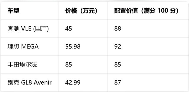 45 万起售的奔驰 VLE,你觉得它能掀翻丰田埃尔法的 “加价王座”,还是会被理想 MEGA 等新势力按在地上打?如果你的预算 45-60 万,买豪华 MPV,你会选奔驰 VLE 还是理想 MEGA?评论区说说你的看法!