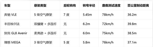 看操控数据对比,奔驰 VLE 的优势一目了然:
