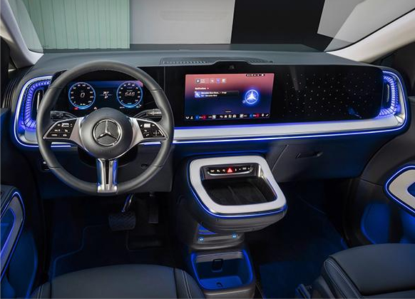 奔驰第三代 MB.OS 操作系统首次落地 MPV,核心亮点是前后排智能联动:二排乘客用专属平板就能控制全车娱乐、空调、座椅,不用再喊司机调整,商务接待时的尊贵感直接拉满。