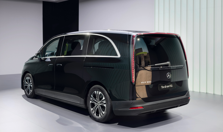 从侧面以及尾部来看,这款奔驰VLE采用了隐藏式门把手设计。在商务车领域,我认为真正上市以后会进行一定的升级。除此之外,也匹配了双侧移滑门。尾部造型也已经得到了公布,尾灯造型设计在MPV领域确实少见,采用了从车顶一直延伸到尾部的垂直造型,非常夸张。值得一提的是,由于整车是一辆纯电MPV。所以采用了大量低风阻的设计,风阻系数只有0.25Cd。
