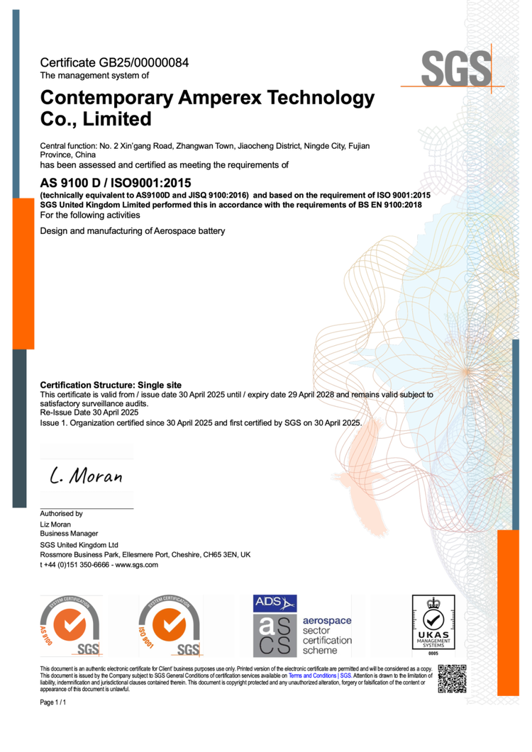 图/宁德时代通过AS9100航空航天质量管理体系认证