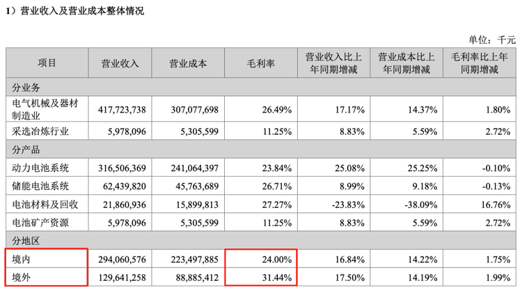 财报里还有一组数据很是亮眼:海外业务毛利率31.44%,比境内业务高出7.44个百分点。这解释了宁德时代为何拼命往海外跑:这不是盲目的市场扩张,而是真金白银的利润。