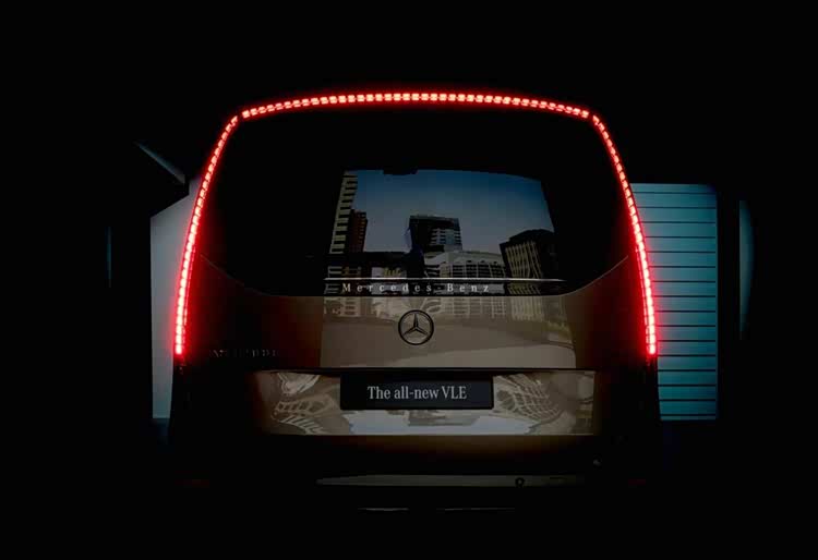 全新奔驰纯电VLE前脸提供两种风格,可发光格栅边框搭配三叉星徽立标或盾标,新一代数字大灯采用micro-LED技术,灯组内部呈现出“三叉星徽”元素。此外,该车侧面应用隐藏式车门把手,尾部灯组点亮后呈现出倒“U”形结构,并且尾窗可独立打开。