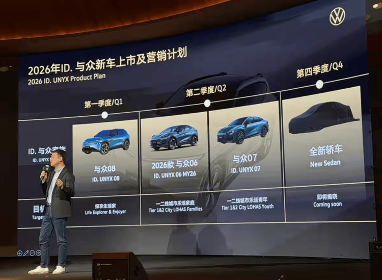大众安徽与众品牌也发布了2026年新产品计划,其中显示大众与小鹏汽车合作车型与众08将在第一季度落地。