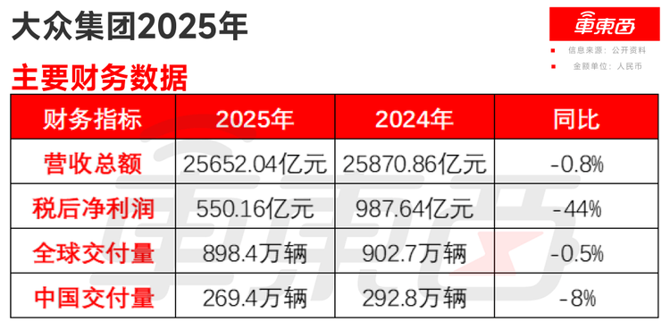 2025年下滑的利润和销量数据,再次为大众“敲响警钟”。