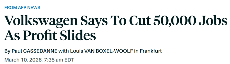 裁员的背后,是大众集团2025年承压的业绩表现,尤其是利润端的大幅下滑成为推动裁员计划落地的直接原因。